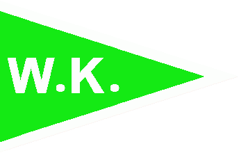 It was a light green pennant with white, dotted initials "W.K." and white fimbriation at two edges.
