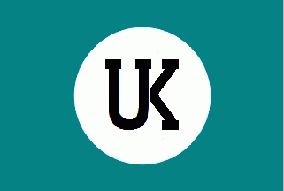 The company is located in Drochtersen (Stade county). The flag is greenish blue with a white disc in the centre. The disc is containing a black inscription "UK". Both initials have one bar in common,