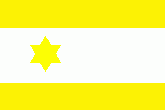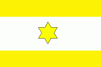 over yellow horizontal triband with ratio 1:2:1. In the white stripe is