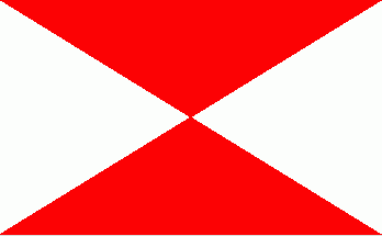 The ratio is approximated 2:3. The flag is divided per saltire into white and