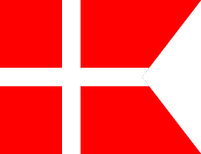 is "Orlogsflaget er et splitflag af dyprod farve med hvdit kors".