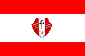 The first white and red flag used by Colegio Serafín de Asís was offerred by alumna María Natalia de la Rocha. A photo shown on the institute’s website shows the today’s flag as horizontally divided red-white-red, seemingly 1:2:1, with the institute’s coat of arms in the middle.