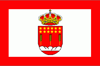 Coat of arms: Gules three spikes or per fess, in chief 12 five-pointed stars of the same 6 and 6, in base mounds argent. The shield surmounted by a Royal crown closed.