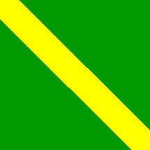 Flag: Quadrangular flag, with proportions 1:1, made of a green field with a diagonal yellow stripe running from the upper hoist to the lower fly. The height of the diagonal stripe shall be 1/4 of the flag's hoist.