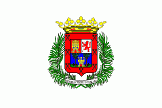 The flag of Las Palmas de Gran Canaria, the capital of Gran Canaria, is white with the municipal coat of arms in its centre.