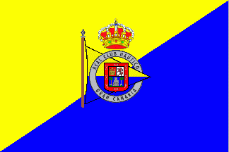 The club's logo is a triangular pennant horizontally divided yellow-blue. The shade of yellow is darker on the pennant than on the flag's upper field. The pole is golden brown, topped by a silver spear head. The pennant is superimposed by the coat of arms of Gran Canaria, which is surrounded by a light grey annulet bearing the club's name in black capitals. The annulet is topped by a Royal crown.