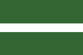 (Dark) green flag with a white central horizontal stripe as wide as 1/6 the flag's height. Colours from the (canting) coat-of-arms, a white dog on a green field, llar de cans meaning 'place of dogs'. Ratio 2:3. Flag adopted 11th November 1994. Source for image and text: Fluvià 2001.