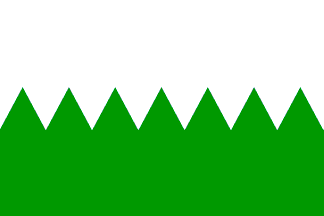 Flag: Rectangular flag, with proportions 2:3, horizontally divided into two equal parts serrated of seven pieces, the upper part white and the lower part green.