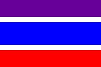 Flag: Rectangular flag with proportions 2:3, made of five horizontal stripes with proportions 1:4, 1:12, 1:3, 1:12 and 1:4, the upper stripe purple, the intermediate stripes white, the central stripe blue and the lower stripe red.