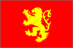 Red flag with a yellow rampant lion centred.