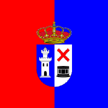 Coat of arms: Per pale, 1. Azure a tower argent ensigned with an armed knight of the same, 2. Argent a well sable ensigned with a St. Andrew Cross gules. The shield surmounted with a Royal Spanish crown.