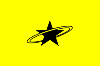 Yellow with ringed large black star.