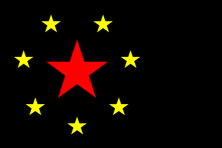 Black, large red star, shifted toward hoist and