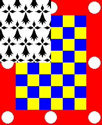 Keywords: ermine (black) | jean ii | arthur ii | jean iii | jean iv | pierre de leon | guy de penthievre | lion (white) | disc (white) | leopards: 8 (yellow) | jeanne la boiteuse |