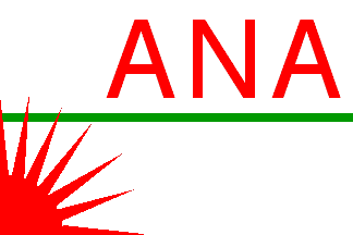 P. Bois [boi03] shows the house flag of Armement Nord-Africain Cherfils as white with an horizontal green line in the middle of the flag, a seven-ray red sun in lower hoist and the red letters "ANA" in upper fly.