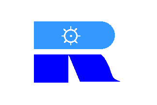 P. Bois [boi03] shows the house flag of the Compagnie Phocéenne d'Armement Maritime as white with a stylized "R", whose upper part is light blue with a white steerwhell and the lower part blue.