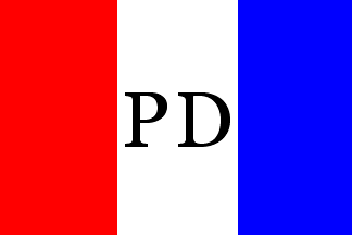 The house flag of Prosper Durand is shown in Lloyd's book of house flags and funnels of the principal steamship lines of the world and the house flags of various lines of sailing vessels, published at Lloyd's Royal Exchange. London. E.C. (1912) [LLo12], also available online thanks to the Mystic Seaport Foundation, #94, p. 41, as vertically divided red-white-blue with the black letters "PD" in the middle of the white stripe.