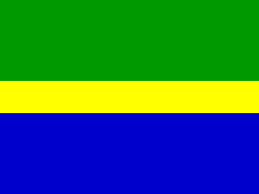 During less than a year (29 June 1959 - 9 August 1960), Gabon had a somewhat different flag, according to Crampton's The World of Flags (1990) [cra90]. Instead of the current 3:4 horizontal tricolor green-yellow-blue, this pre-independence flag had a French tricolor in the canton and narrower yellow stripe (4 green, 1 yellow, 4 blue).