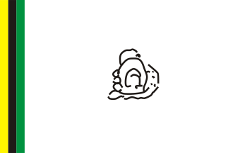 Yellow over black over green horizontal stripes with a yellow device