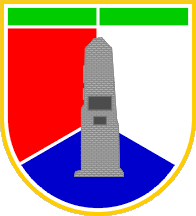 Before the adoption of the toaday's coat of arms, probably since the early 1990s, Tuhelj used an other, coat-or-arms-like emblem, the shield divided into three fields in inverted pairle of red, white and blue with a green chief, and overall pictured the obelisk of the monument to the Croatian anthem erected on the site where the song was written. Contrary to what one may thing at first, this is not a site with a wide picturesque view of the country, but rather a small wooded closed valley with the Sutla river flowing though it, a peaceful and pleasant spot in the summer months. When Kumrovec seceededd from Tuhelj in 1997, the site was left in it. Therefore Tuhelj abandoned the use of that emblem and was, apparently, not using anything until the adoption of the new symbols in 2004.