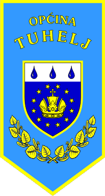 The crown is that from the statue of Mary, patron of the municipality, to whom the ring of stars also refers. The water drops symbolize the thermal spa for which Tuhelj is famous.