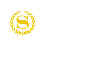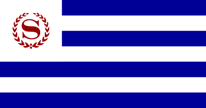 white canton bearing the letter S in a wreath in dark crimson, based on a photo at