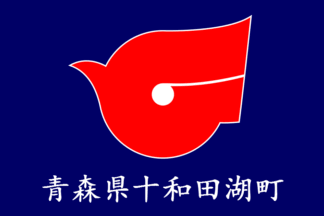 The flag of the former town of Towadako was blue with mark. The town is now,