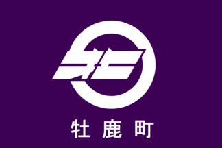 The flag of the former town of Oshika was purple with mark. The town is now,