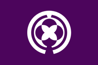 flag law. The purple flag has a white town emblem in the center. The town emblem