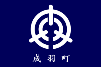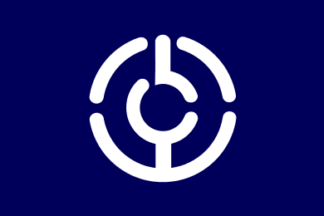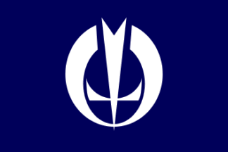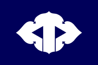 The flag of the former town of Nariwa was blue with mark. The town is now,