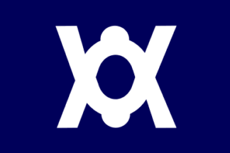The flag of the former town of Ukan was blue with mark. The town is now, from