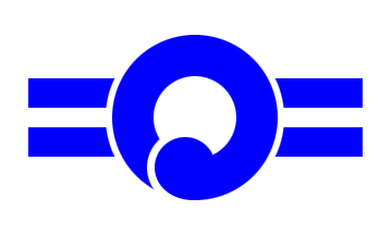 The flag is white with two blue horizontal stripes, not touching the edges, a sort of blue curl placed in