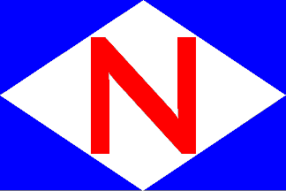 Blue with white diamond charged with red N.