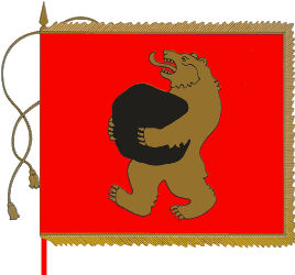 black stone. Flag proportions 5:6, fringe is golden, finial is