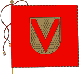 on comb-powdered golden field reverse red chevron. Flag