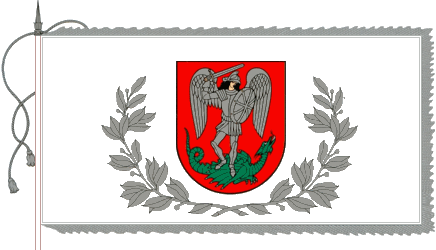 on white field the arms of Joniskis: St. Michael slaying dragon,