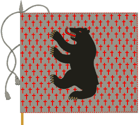 red tongue. Flag proportions 5:6, free edges bordered with red