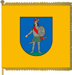 Sakyna: an unmounted knight. Flag proportions 10:11, fringe is