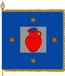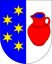 The Kursenai coat of arms depicts stars and a jug. The shield is
