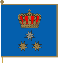 silver over two golden. Flag proportions 1:1, free edges bordered