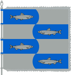 on blue fields 4 silver vendaces facing the middle line. Flag