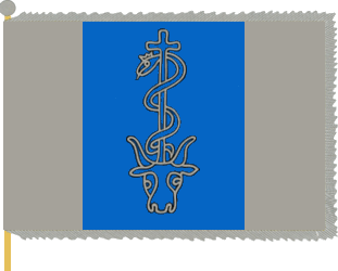 crowned grass-snake. Flag proportions 2:3, fringe is silver,