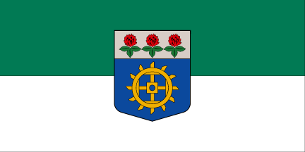 proportions 1:2, Coat of Arms 3/5 from flag hight. Colors Gold