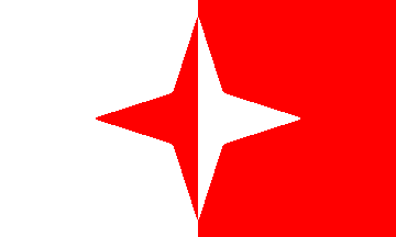 Blazon: Per pale Argent and Gules a mullet of four points counterchanged.