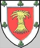 Leons coat of arms: in red a golden corn sheaf; a silver shield border, charged