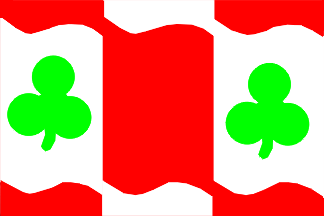 and the left and right ends coinciding with hoist and fly; the white tiles charged with a green clover of 1/2 flag height.