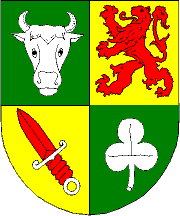 In the first quarter of the arms is a silver cow's head. In the fourth