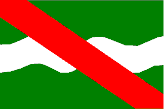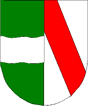 Arms: per pale: 1. vert a wavy fess argent; 2. argent a bend gules.