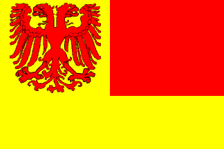 2/3 flagheight; on this yellow rectangle a red double eagle with spread