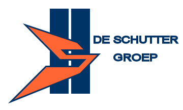 An unusual house flag is flown by Schutter Group, a multinational firm with head office at Capelle aan den IJssel, east of Rotterdam. See it on the Company homepage. It is white bearing two blue vertical stripes in front of which an orange, and rather tortuous, initial ‘S’ appears (within blue holding lines). For good measure, the words ‘DE SCHUTTER / GROEP’ are added, in blue, to the right of this logo.